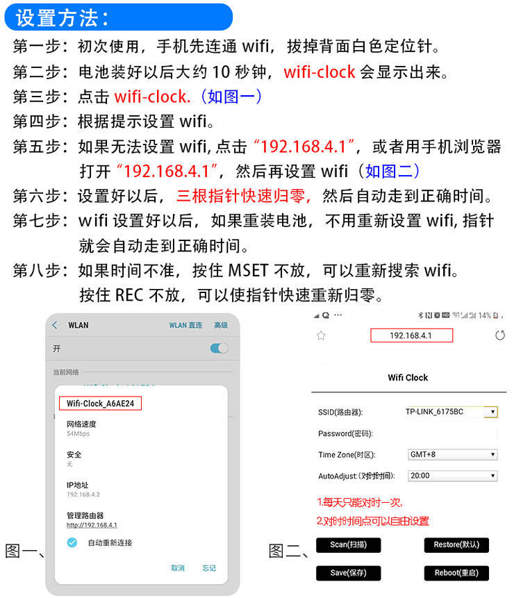 Wifi自动对时钟只需要接收wifi信号,即可对时,可应用于体育馆、医院等不方便布线的场所。无线wifi时钟是一款通过无线wifi技术接收网络NTP时间信息(信息内容:年、月、日、时、分、秒),实现自动对时的网络子钟。子钟带后备电池,停电时不显示,但内部时钟可连续运行72小时,即72小时内恢复供电,可不必对时间进行校准。